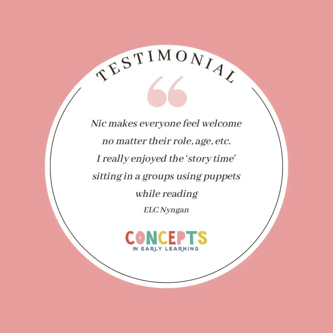 โI have just finished a training session on Creative Play with Nic today. I cannot recommend Nic enough. Possibly the best trainer I have had throughout my ten year career. Nic's delivery of her training was flawless. She was engaging, respectful, a great listener and an amazing story teller. I enjoyed every second of the five hour training session. I wished it were longer! Nic's experience and passion in early learning were inspiring. I cannot wait for her to come back to our service and share more of that with us. Lastly, Nic you were amazing!โ
